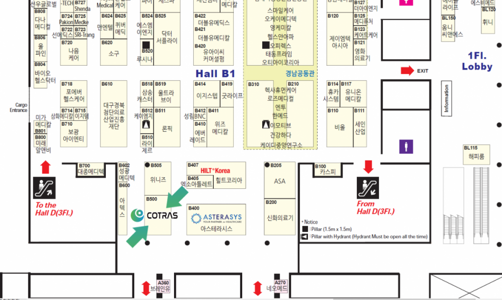 위치는 1층 홀B안에 B500 (코트라스) 입니다.