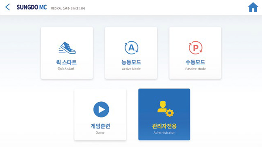 Spasm(강직)을 제어하는 기능이 탑재 되어있으며 속도, 저항, 시간, 회전 방향 등이 표시